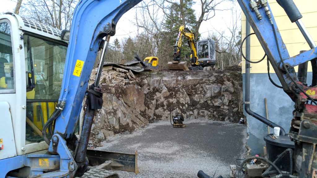 Nytt år och bygget av nya studion tuffar på. Bilden är från när vi borrade och spräckte bort det sista av berget, vi har efter det flyttat högen med 55 kubik berg från tomten och lagt dränering och singel för att påbörja gjutning av plattan. Det kommer bilder framöver, antingen här eller på Instagram (https://www.instagram.com/saintpid_mastering). Om allt går som planerat så ska studion vara färdig till sommaren, då blir det några veckor av test-mastering och kalibrering för att till hösten dra igång på heltid i Saintpids fjärde och förhoppningsvis bästa studio hittills!